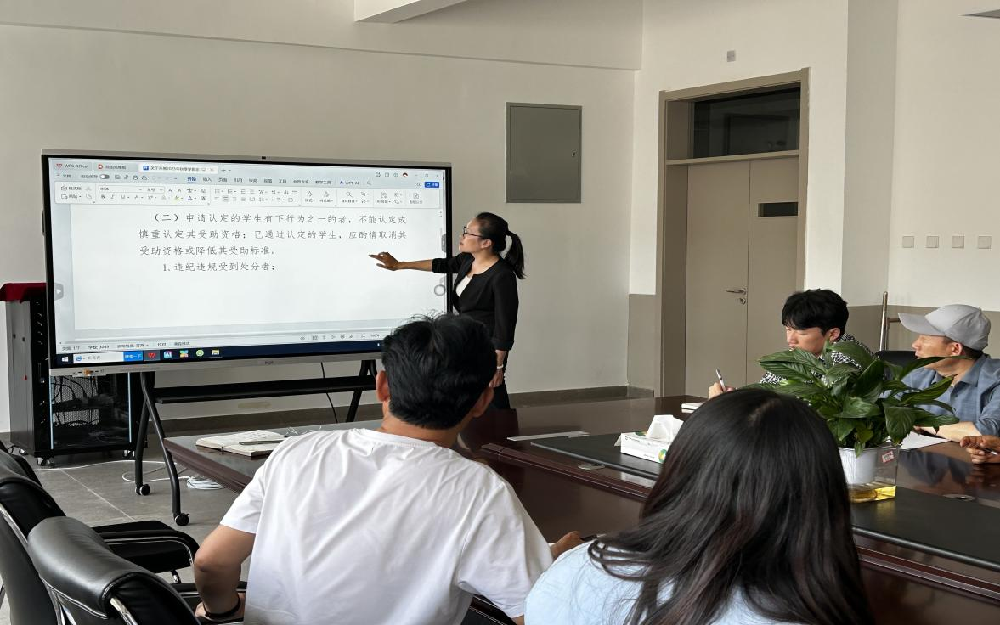 二、困难学生认定与动态管理:结合《甘肃省本专科生资助政策》要求,会议详细解读了家庭经济困难学生认定标准及流程,要求各学院通过“线上+线下”双渠道审核材料,建立动态档案库,并加强隐私保护。