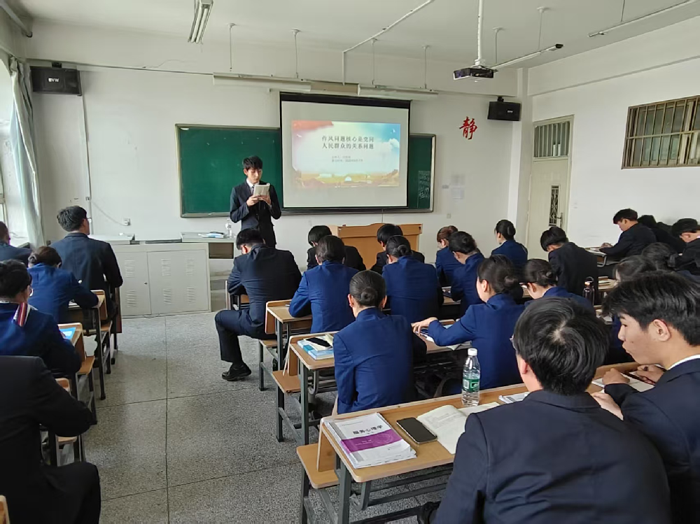 2025年5月13日下午四点,在2号教学楼608教室,一场以“作风问题的核心是党同人民群众的关系问题”为主题的党课如期举行。本次党课由党小组副组长刘旭涛主持,吸引了众多30期入党发展对象和31期入党积极分子的积极参与。