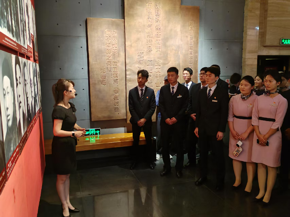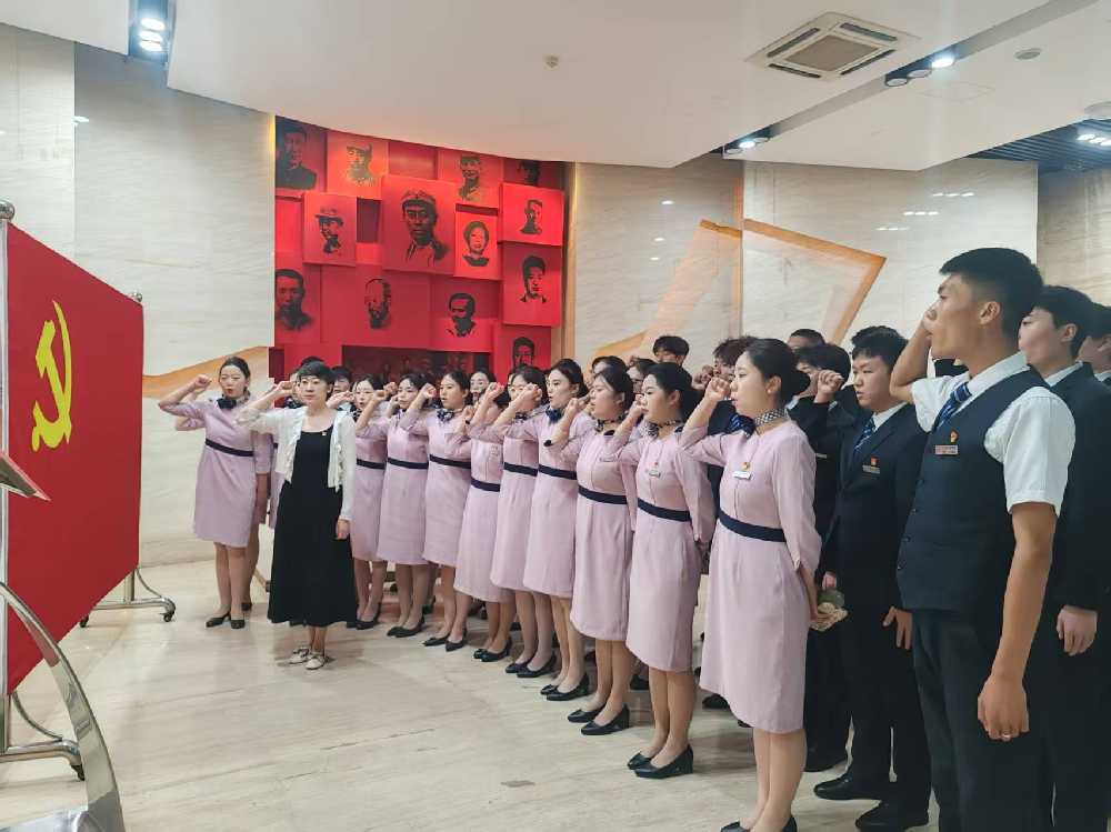 在纪念馆前,面对着鲜红的党旗,全体党员紧握右拳,庄严诵读入党誓词。这短短80个字的誓词,凝聚了党的性质、宗旨、纲领和目标,是共产党人初心和使命的集中体现,也是每位党员对党的忠诚承诺。