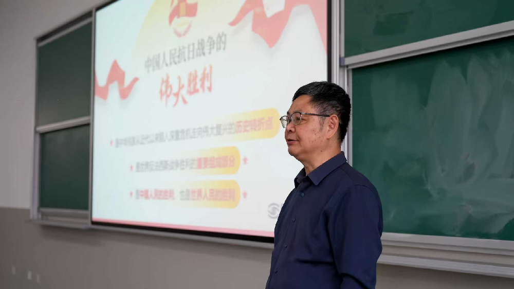 课堂上,宋院长首先对艰苦卓绝的 14 年抗战历程进行回顾,从九一八事变到日本无条件投降,他讲述了日本侵华的残暴行径以及中国人民遭受的巨大苦难,让学生们深刻体会到抗战胜利的来之不易。