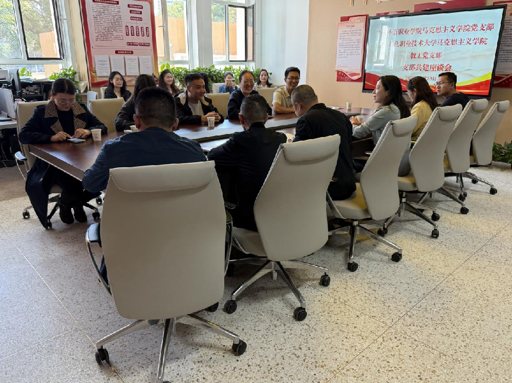 为深入学习贯彻习近平新时代中国特色社会主义思想及党的二十大、党的二十届三中全会精神,持续提升党建工作科学化水平,深化校际马克思主义学院(以下简称 “马院”)交流合作,9 月 23 日下午,我校马院党支部一行赴兰州石化职业技术大学,与该校马院教工党支部联合开展支部共建交流活动,为两校马院协同发展搭建优质平台。