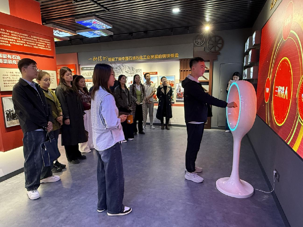 交流活动以“共促马院建设、同提思政实效”为主题,分实地观摩与座谈研讨两个环节展开。活动伊始,我院教师代表在兄弟院校马院负责人的陪同下实地参观了该校“技能报国”主题展馆、虚拟仿真教学体验中心、集体备课中心、思政课创新中心、图书资料室及标准化教研室等场所。通过观摩石油工业发展史展览,双方教师共同探讨了“行业文化融入思政课”的具体方式,两校进一步明确了“将地方资源、行业特色转化为思政育人动能”的合作思路。